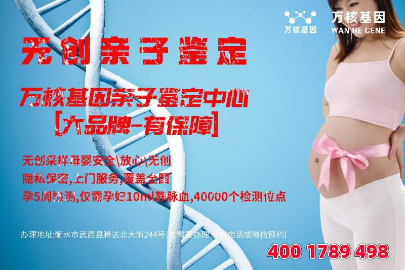 武邑个人隐私亲子鉴定办理地址:衡水市武邑县腾达北大街244号(如需要办理 提前电话或微信预约)-预约电话:4001789498,服务地址包括:桃城区、冀州区、枣强县、武邑县、武强县、饶阳县、安平县、故城县、景县、阜城县、深州市等武邑周边地区,武邑亲子鉴定基因检测的服务范围涵盖了广义的亲子鉴定、DNA验证、亲子鉴定证明等等。